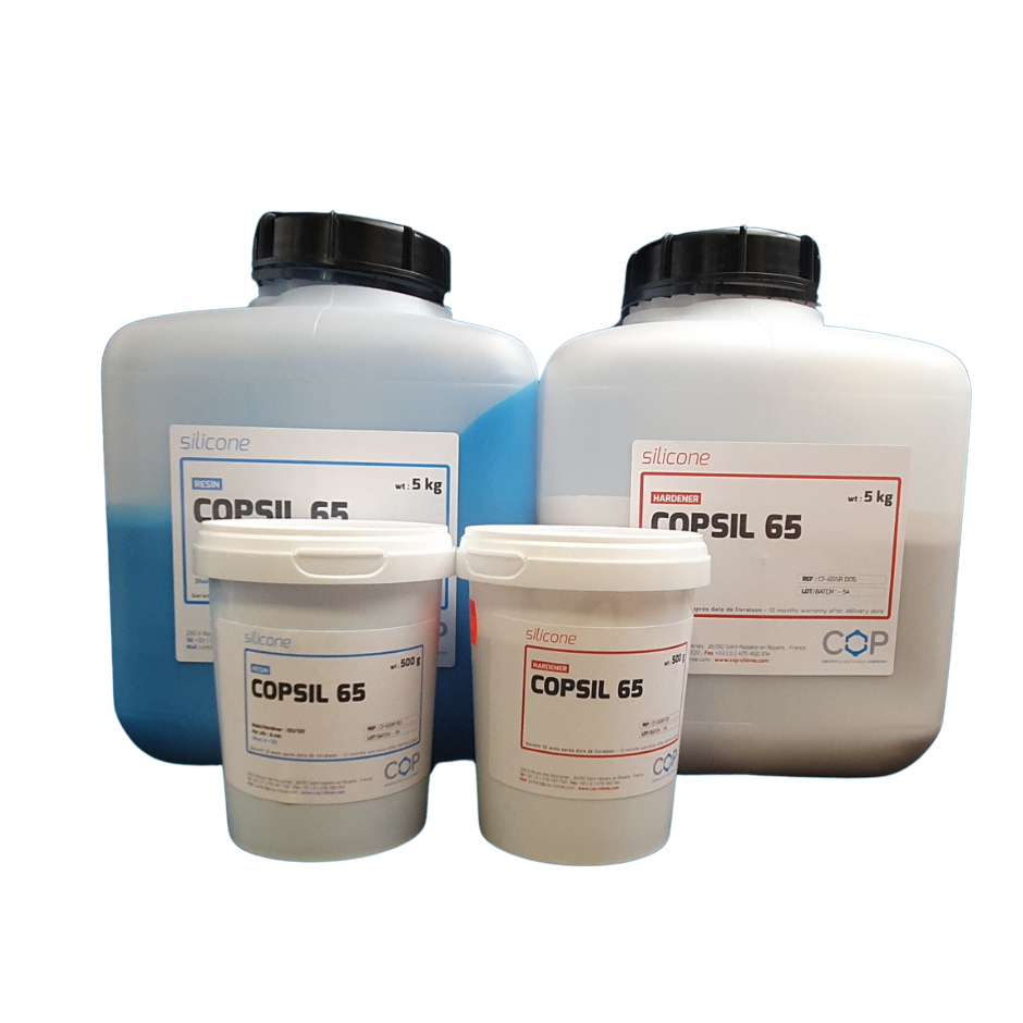 COPSIL 65 silikonelastomer, er et tokomponentsystem som skal blandes i like deler (base og herder).